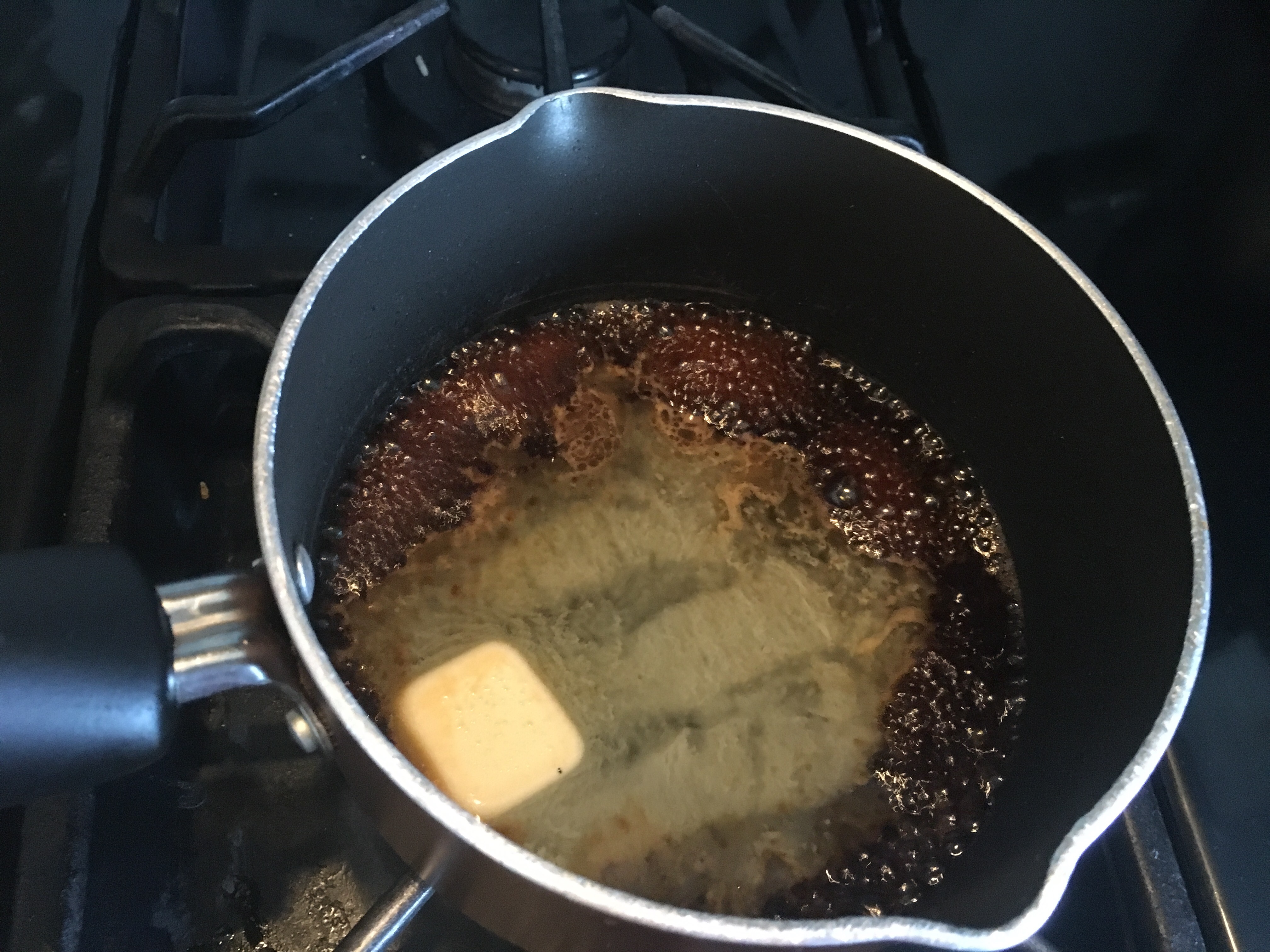 Next you’ll need a small sauce pan add the soy sauce, brown sugar and butter stir and let everything melt and incorporate with one another