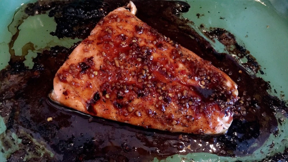 This will go in the oven for 10 min after the ten minutes are up remove from the oven and apply sauce again ,back in the oven it goes . Repeat this process with 10 min intervals till the salmon is done to your liking