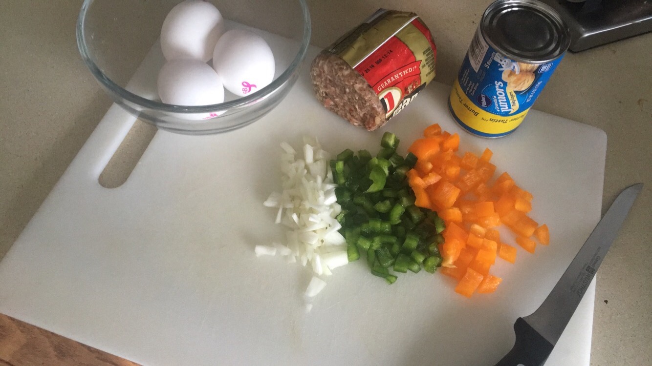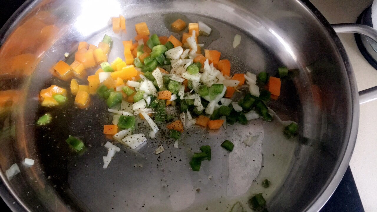 2. 1/3 cup chopped small green orange bell pepper & onion