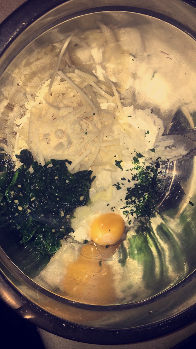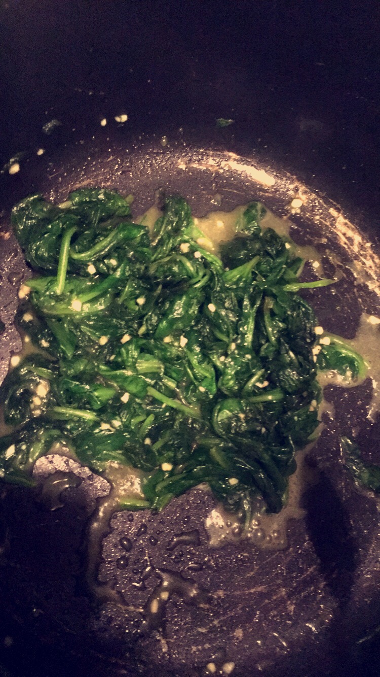 In a pan sautée spinach for lasagna rolls. Heat pan with olive oil and a tsp minced garlic