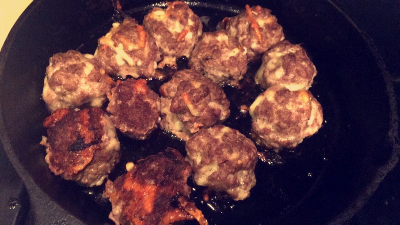 For the next 20 min of cooking I transferred meatballs to a different dish because my cast iron pan was cooking them to fast. In a separate dish I placed half a jar of tomatoe sauce and placed the meatballs on top