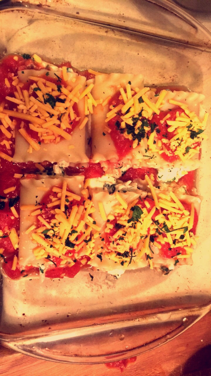 Lucky for me I woke up and seen my car covered with snow and temps in the low 30’s I also felt a cold coming along so I had to think quick what can I make for dinner that’ll be easy and tasty. I came up with lasagna and meatballs with a twist this should last me two days while I’m on bed rest trying to tackle this cold.