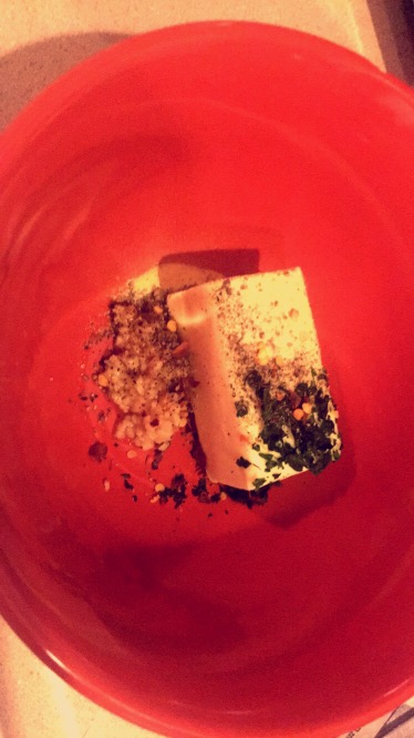 In a microwave safe bowl add the butter and seasoning and melt about 35 seconds